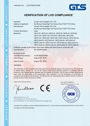 產品符合IEC60269-4/GB13539.4,并獲取CE認證